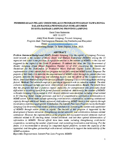 32.0277_GARIN DIMA RAHMATAN_PEMBERDAYAAN PELAKU UMKM MELALUI PROGRAM PINJAMAN TANPA BUNGA DALAM RANGKA PENINGKATAN JUMLAH UMKM DI KOTA BANDAR LAMPUNG PROVINSI LAMPUNG.pdf Download (548kB) | Preview |